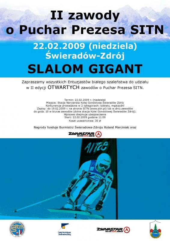 Miłośników sportów zimowych zapraszamy do udziału w II otwartych Zawodach o Puchar Prezesa SITN, które odbędą się 22.02.2009 roku na terenie Stacji Narciarskiej Kolej Gondolowa Świeradów Zdrój w Górach Izerskich w Świeradowie Zdroju.