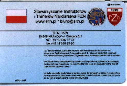 Z dużym opóźnieniem, bo dopiero 14 grudnia otrzymaliśmy od naszego partnera austriackiego legitymacje plastikowe IVSI wyprodukowane zgodnie ze standardowymi procedurami. W dniu dzisiejszym wydrukowano 26 tych nowych legitymacji. Na legitymacji drukujemy fotografię (taka sama jak na legitymacji instruktora PZN), pod legitymacją kod paskowy związany z posiadaczem legitymacji, imię i NAZWISKO, datę urodzenia, narodowość (POLEN /POLAND)oraz numer.