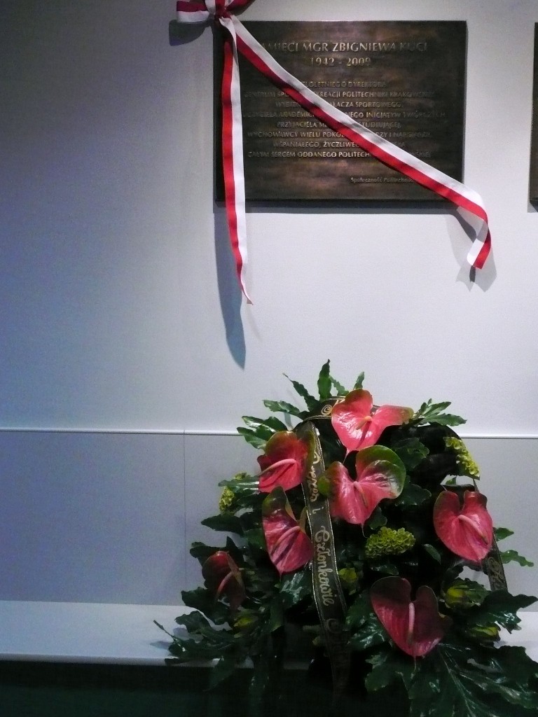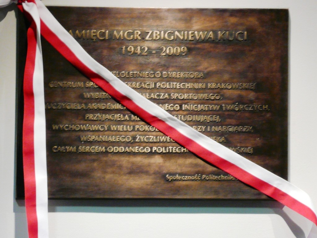 Wczoraj, 5 października w pierwszą rocznicę śmierci naszego Prezesa Zbigniewa Kuci, w Centrum Sportu i Rekreacji Politechniki Krakowskiej na ulicy Kamiennej 17 uroczyście odsłonięto tablicę pamiątkową Jego postaci.