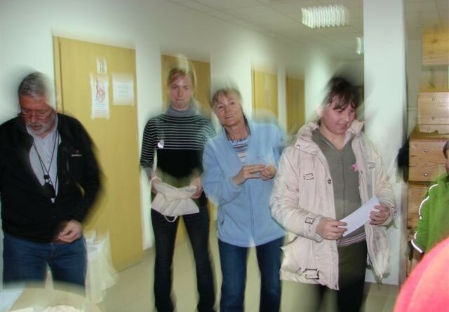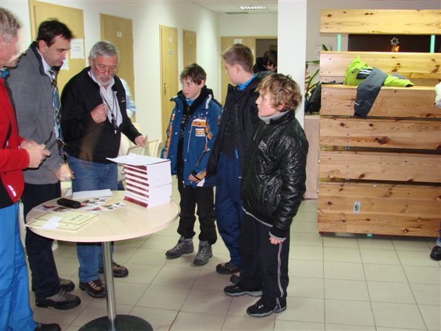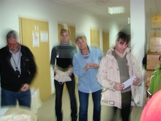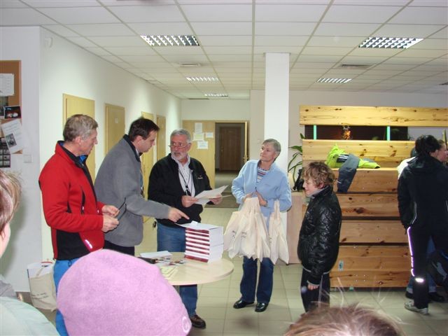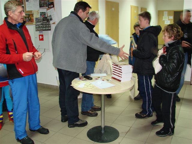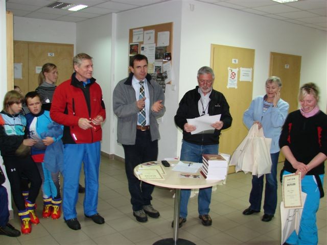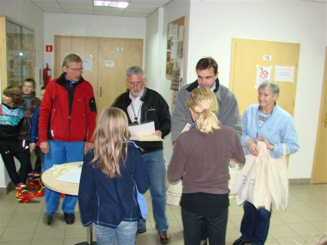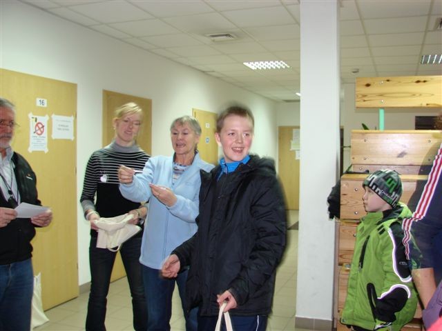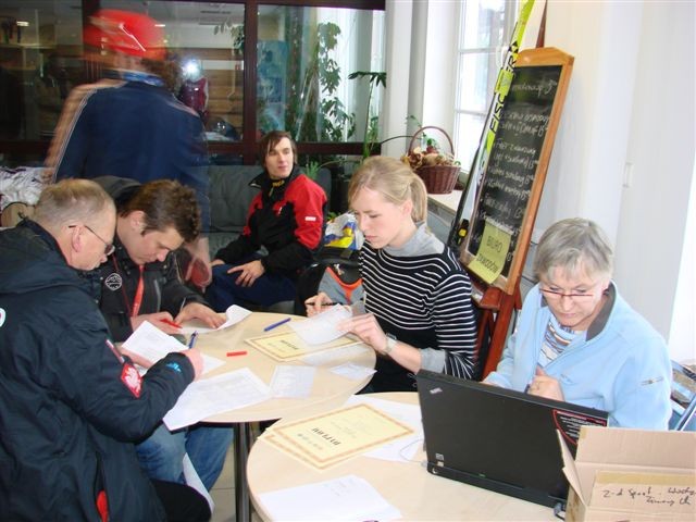 Biuro zawodów – przygotowanie list startowych, obliczenia i wypisywanie dyplomów – koleżanka Bożena Januć.