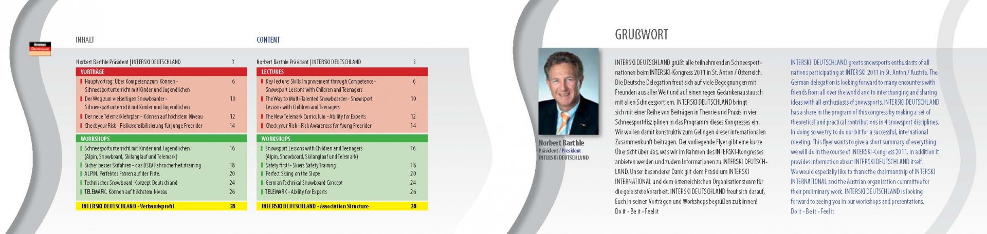 „Snow sports &, winter tourizm. A symbiosis without future?” (SCHNEESPORT &, WINTERTOURISMUS. EINE SYMBIOSIS OHNE ZUKUNFT?)”to referat Interski Austria otwierajacy Kongres INTERSKI 2011 w dniu 16 stycznia 2011r. Szczegółu patrz: http://www.sitn.pl/dokumenty/439,kongres-interski-st-anton-2011-materialy-referaty.html