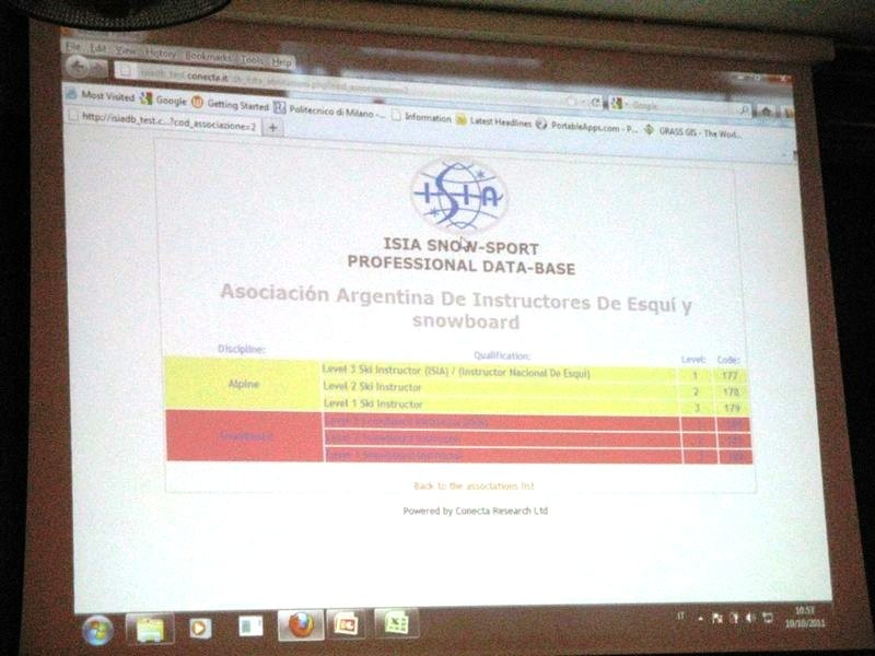 Przedstawiono narzędzia do weryfikacji programów narodowych w zakresie Minimalnych Wymagań. Po raz pierwszy zaprezentowano Centralna Internetową Bazę Danych instruktorów ISIA, w której wprowadzono już 20 000 nazwisk z 10 krajów – w tym Polski. Przyszłościowo Baza ma służyć firmom i przedsiębiorstwami związanym z obsługą sportów śnieżnych (sprzęt, ekwipunek i skipassy itd.).
