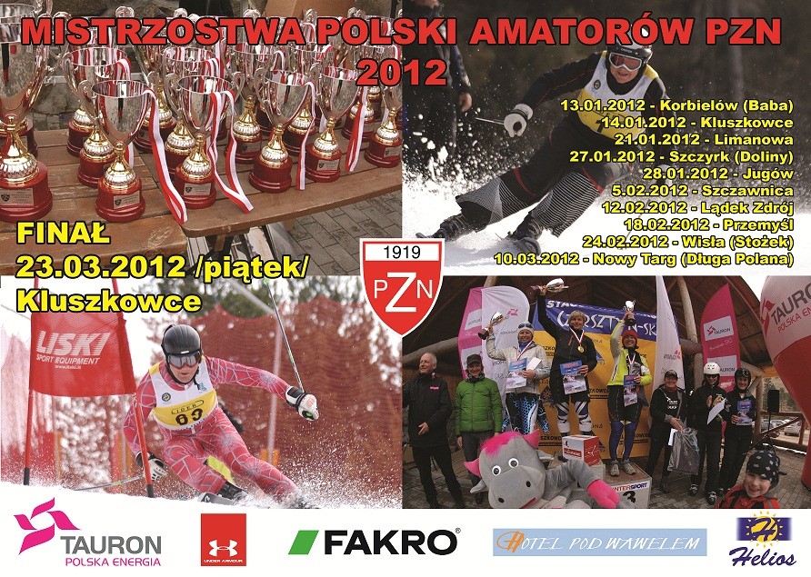 Pierwsze eliminacje Mistrzostw Polski Amatorów PZN 2012 już za nami. Odbyły się już zawody w Korbielowie, Kluszkowcach oraz po raz pierwszy w ośrodku w Jugowie na Dolnym Śląsku. Wyniki eliminacji można znaleźć na naszej stronie PZN w zakładce Narciarstwo Powszechne. Kolejne eliminacje odbywają się w Szczawnicy oraz w Lądku Zdroju. Informacje o zawodach na www.wnp.pzn.pl. Zapisy na zawody u organizatorów lokalnych.