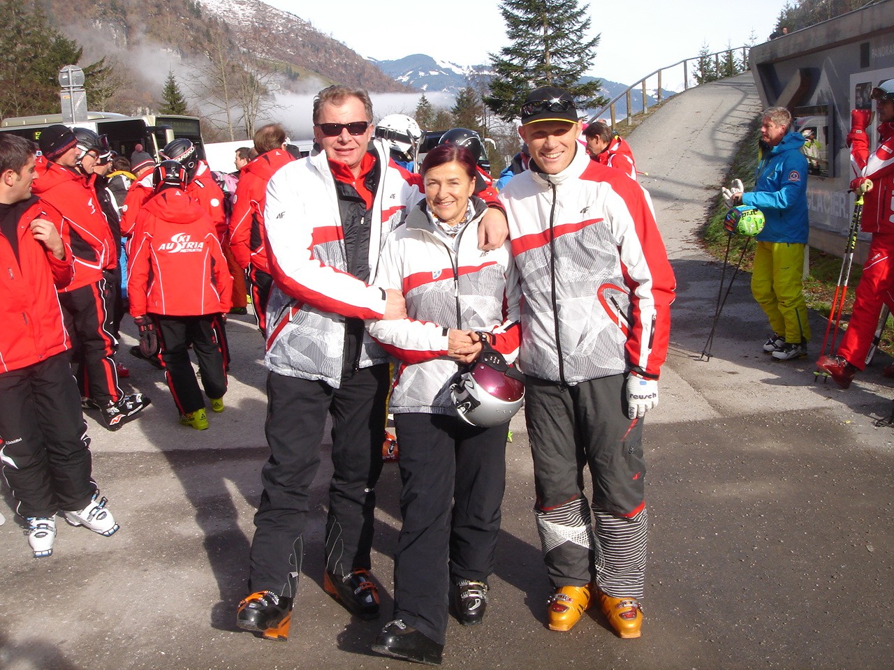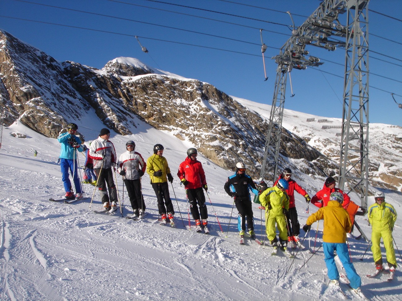 W dniach 8-10.11.2012, jak co roku nasi austriaccy koledzy z OVSI na lodowcu Kitzsteinhorn odbyli swoje przedsezonowe spotkanie. Korzystając z zaproszenia, wzięła w nim udział delegacja naszego Stowarzyszenia w składzie: Zuzanna Podgórna, Bogdan Pietrykowski i Rafał Wołk. Na zajęciach praktycznych wszystkich uczestników podzielono na kilka grup ćwiczebnych. Prowadzący zajęcia demonstrował ćwiczenia związane z dostosowaniem metodyki nauczania jazdy na nartach do zmian wprowadzonych przez FIS w parametrach nart sportowych, głównie gigantowych. Koledzy z Austrii doświadczeni poprzednią rewolucją w sprzęcie (pojawienie się nart carvingowych), kiedy długo trwali przy technice jazdy na nartach o małym taliowaniu, niejako „dmuchają na zimne”, i już teraz zastanawiają się jakie korzyści dla narciarstwa amatorskiego mogą wnieść narty o większym promieniu skrętu.