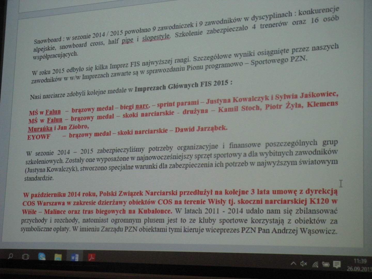 W sobotę 26.09.2015 r. odbył się w Krakowie Walny Zjazd Sprawozdawczy Polskiego Związku Narciarskiego.