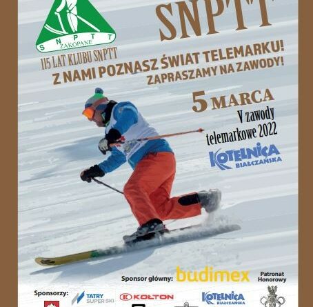 Sekcja Telemarku klubu SN PTT Zakopane 1907 organizuje w dniu 5 marca 2022 r. kolejne, już V Zawody Telemarkowe wspólnie z Ośrodkiem Narciarskim Kotelnica Białczańska. Nasze zmagania odbywają się w Światowym Dniu Telemarku, który przypada na pierwsze weekend marca. To nasz polski akcent! Po raz pierwszy zawody posiadają patronat Polskiego Komitetu Olimpijskiego Jest już tradycją,...